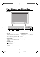 Part Names and Function Front View POWER/STANDBY INPUT SELECT PROCEED VOLUME VOLUME DOWN UP LEFT/– 2 1 INPUT SELECT /EXIT RIGHT/+ POWER/STANDBY 5 4 3 7 1 PROCEED Sets the on-screen display (OSM) mode and displays the main menu. 5 POWER/STANDBY indicator When the power is on ............................. Lights green. When the power is in the standby mode ... Lights red. 2 VOLUME Down and Up Adjust the volume. Functions as the CURSOR (▲/▼) buttons in the On-screen display (OSM) mode.