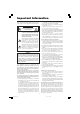Important Information Precautions 2. Do not use this unit’s polarized plug with extension cords or outlets unless the prongs can be completely inserted. 3. Do not expose the unit to water or moisture. 4. Avoid damage to the power cord, and do not attempt to modify the power cord. 5. Unplug the power cord during electrical storms or if the unit will not be used over a long period. 6. Do not open the cabinet which has potentially dangerous high voltage components inside.