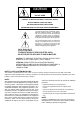 CAUTION RISK OF ELECTRIC SHOCK DO NOT OPEN CAUTION: TO REDUCE THE RISK OF ELECTRIC SHOCK, DO NOT REMOVE COVER (OR BACK) NO USER-SERVICEABLE PARTS INSIDE REFER SERVICING TO QUALIFIED SERVICE PERSONNEL The lightning flash with arrowhead symbol, within an equilateral triangle, is intended to alert the user to the presence of uninsulated “dangerous voltage” within the product’s enclosure that may be of suffi-cient magnitude to constitute a risk of electric shock to persons.
