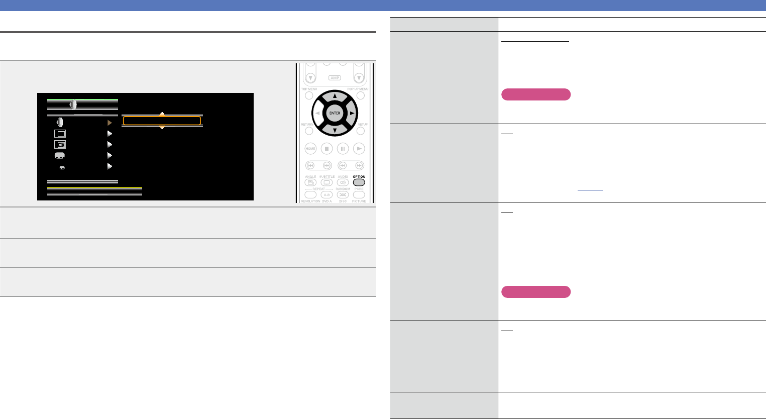 U kunt verschillende instellingen voor OPTION opgeven tijdens de weergave. Het instellingsmenu wordt