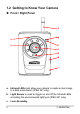 1.2 Getting to Know Your Camera Front / Right Panel h e a g f c b d i a. Infrared LEDs (x6) allow your camera to capture clear image in a dark environment (IPEA 241 only). b. Light Sensor is used to trigger on and off the Infrared LEDs according the environmental light level.(IPEA 241 only) c.