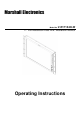 Specifications (continued) Maintenance ■ Screen Cleaning Periodically clean the screen surface using ammonia-free cleaning wipes (Marshall Part No. V-HWP-K). A clean microfiber cloth can also be used using only non-abrasive and ammonia-free cleaning agents. Do not use paper towels. Paper towel fibers are coarse and may scratch the surface of the polycarbonate faceplate or leave streaks on the surface. Antistatic and fingerprint resistant cleaning agents are recommended.