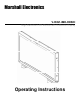 Specifications (continued) Maintenance ■ Screen Cleaning Periodically clean the screen surface using ammonia-free cleaning wipes (Marshall Part No. V-HWP-K). A clean microfiber cloth can also be used using only non-abrasive and ammonia-free cleaning agents. Do not use paper towels. Paper towel fibers are coarse and may scratch the surface of the polycarbonate faceplate or leave streaks on the surface. Antistatic and fingerprint resistant cleaning agents are recommended.