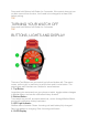 Press and hold Bottom Left Button for 2 seconds. If the watch does not turn on after removal from the box, it will need to be charged to at least 50% before pairing. TOP TURNING YOUR WATCH OFF Press and hold Bottom Left Button for 2 seconds. TOP BUTTONS, LIGHTS AND DISPLAY There are Two Buttons on your watch; top left and bottom left. The watch crown, on the right, is used only to set the time and is not a button. The watch glass also functions as a button for some features. 1.