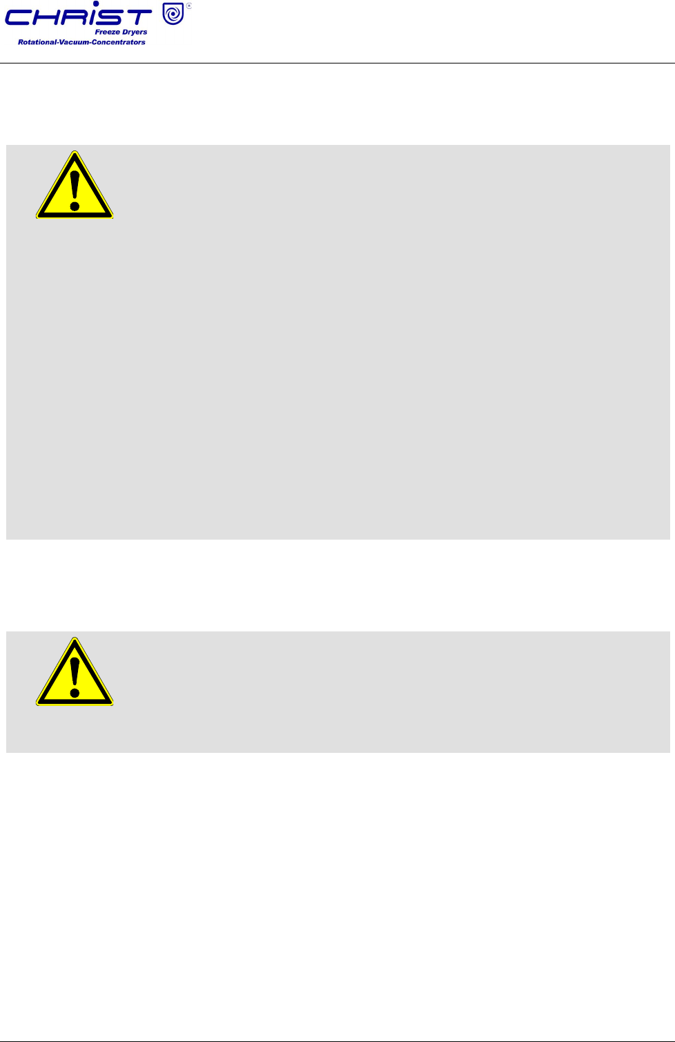 • Do not lean against or rest on the freeze-dryer during its operation.