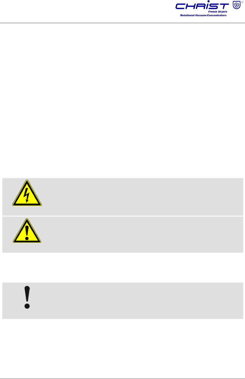 CHRIST freeze-dryers are units of safety class I.The freeze-dryers of the