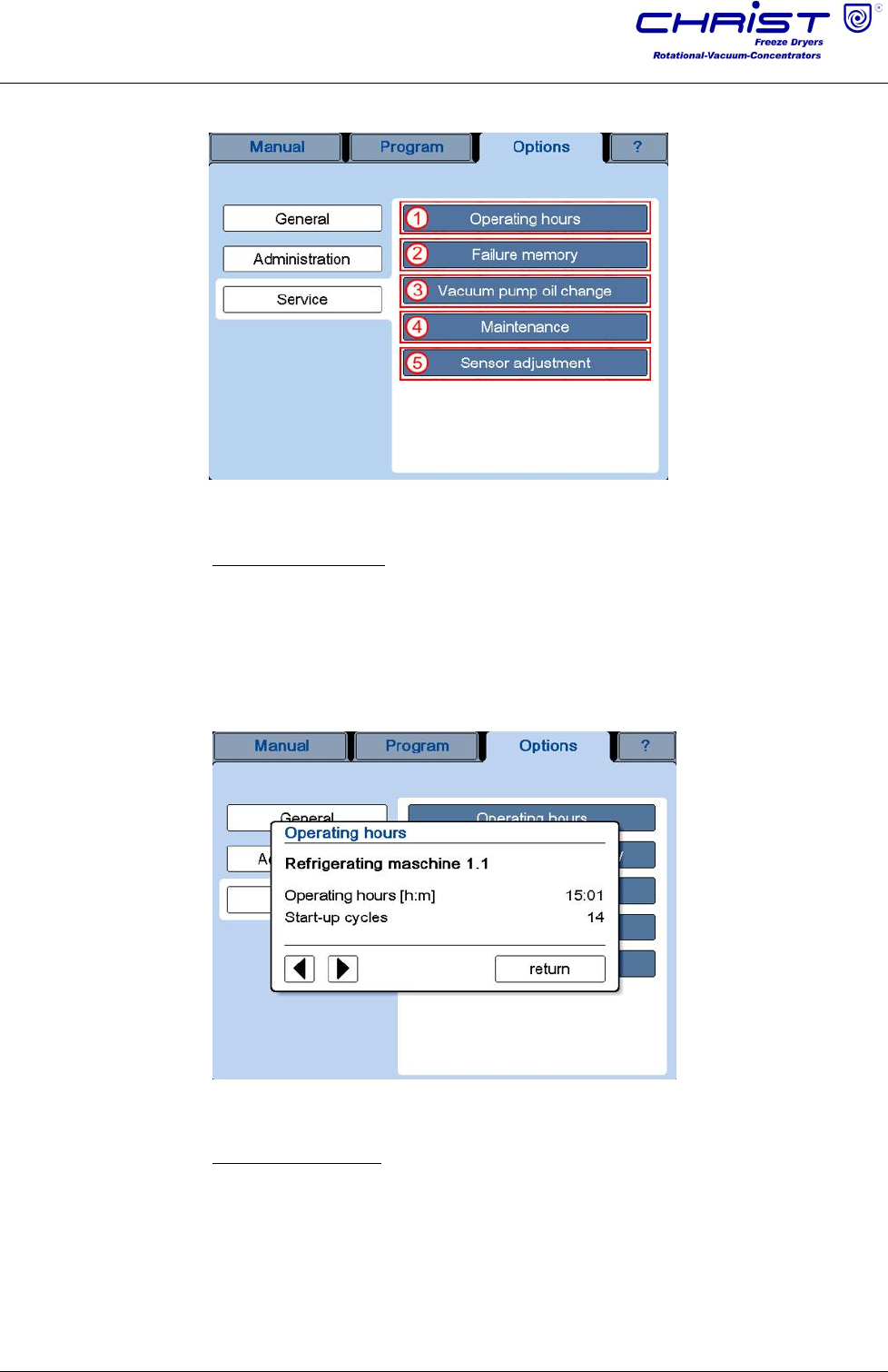 Fig. 52: Dialog box "Service" (varies depending on the type of system)