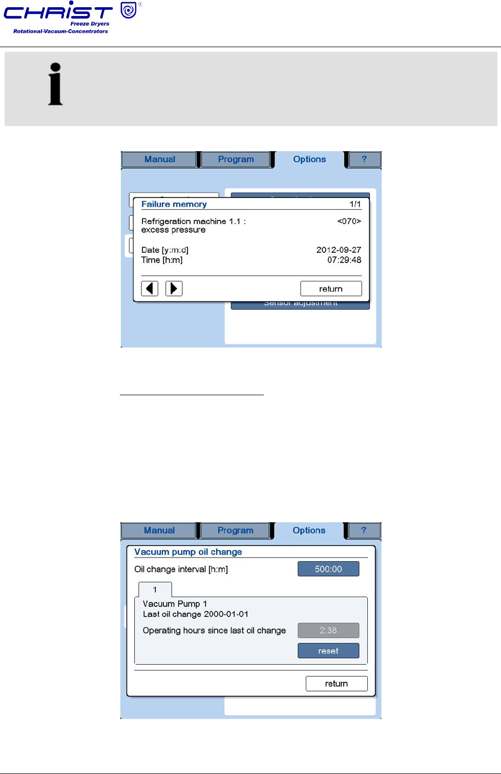 • Reset the operating hour counter in the dialog box “Vacuum pump oil