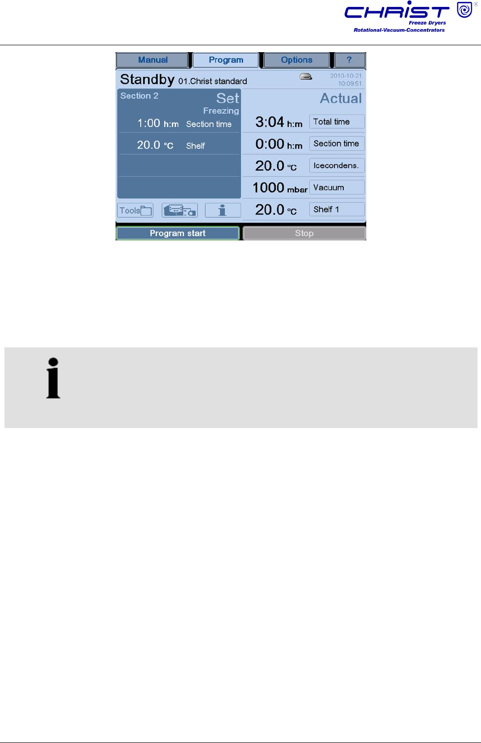 Fig. 74: The freeze-drying process can be started with the aid of the button “Program start”.