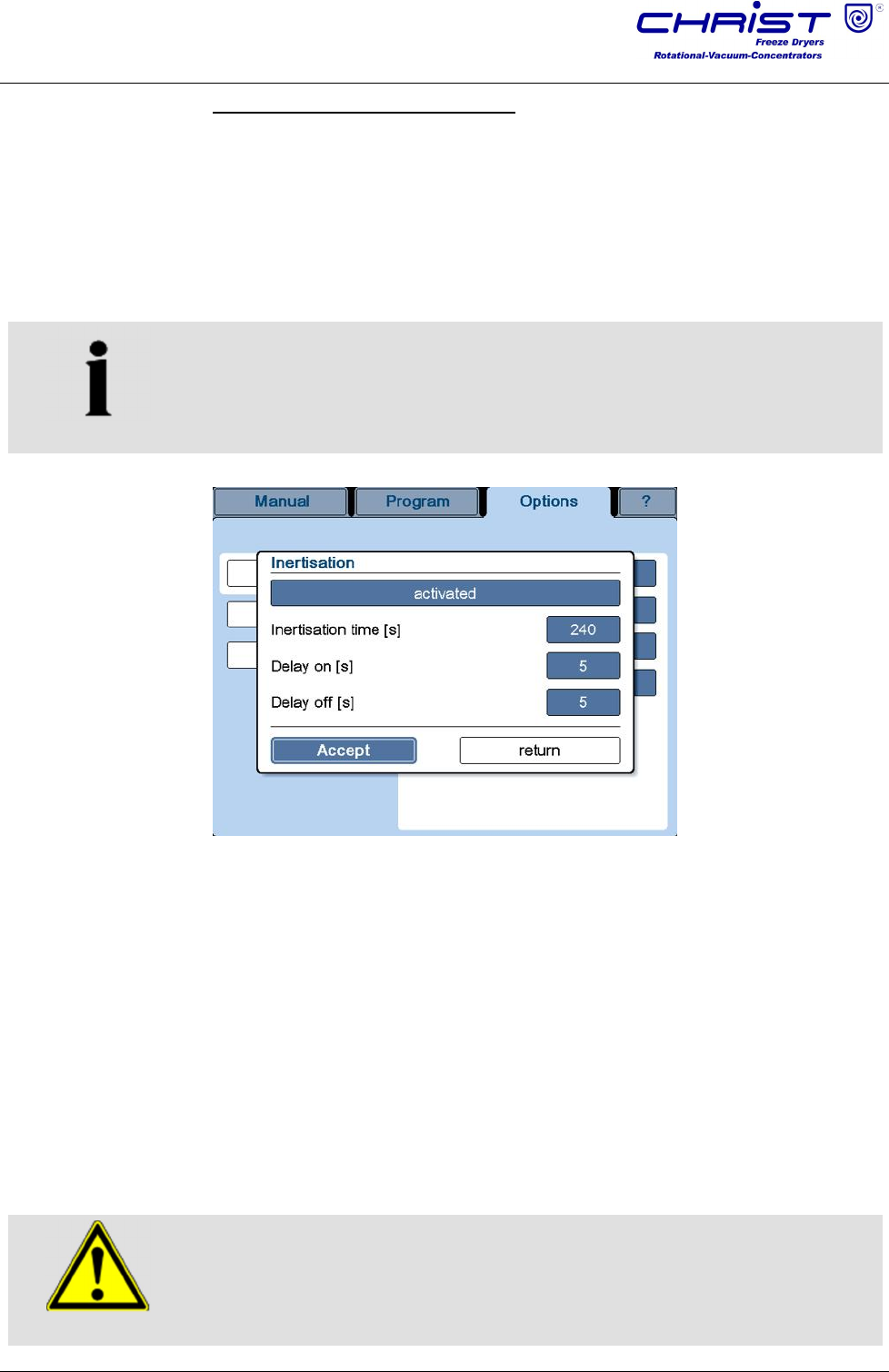 If the "Inertisation" option is active and the freeze-dryer is in the standby
