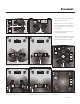 Figure 12. Connecting the Helos 20 for stereo use. Figure 13. Connecting the Helos 20 bridged for mono use. Figure 14. Installation step 6–7. 5 6 Place speaker in hole. 7 Use a 2-inch long #2 Phillips driver and an electric drill to lock all 3 mounting locks in place. Use a low clutch setting on the drill. Take care to assign the same color to the (+) terminal on the speaker and the amplifier. Stereo: Connect two sets of speaker cables from the left and right channels of your amplifier (figure 12).