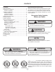 CUIDADOS Y LIMPIEZA Almacenamiento a largo plazo / Acondicionamiento para el invierno: 1. El momento del acondicionamiento para el invierno es cuando la temperatura ambiente mínima diaria es igual o menor de 38 ºF. ! PRECAUCION suciedad y desperdicios que puedan acumularse sobre las superficies durante el período invernal. 18. No coloque una cubierta sobre la unidad, porque puede atrapar condensación.