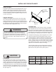 OVERLAY DOOR PANEL INSTALLATION ! CAUTION Clearance for hinge 2 places Hinge side of door Weight of overlay door panel must not exceed 15 pounds (6.8 kg) for a solid door model or 10 pounds (4.5 kg) for a glass door model. Figure 16 Right Hand Hinged Door 15" (38.1 cm) wide appliance Figure 14 Left Hand Hinged Door 15" (38.1 cm) wide appliance Clearance for hinge 2 places 143⁄4" (37.5 cm) 1 ⁄4" (6 mm) Deep 1 143⁄4" (37.5 cm) ⁄4" (6 mm) Deep 1" (25.4 mm) diameter counter bore 1⁄4" (6.