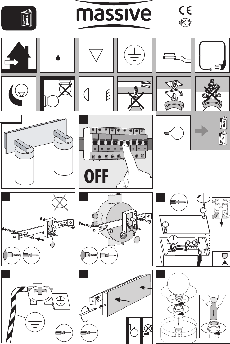 Distributor Satenrozen 13 2550 Kontich–Belgium A IP20 MC0 000 143 A R46 IP X1 8mm F � 0,5 0,5m Type A 1 E14 Max. 40W 2a 4 © Copyright Massive Last update : 24/09/10 NL NL 2b 3 5 6 E X C L.