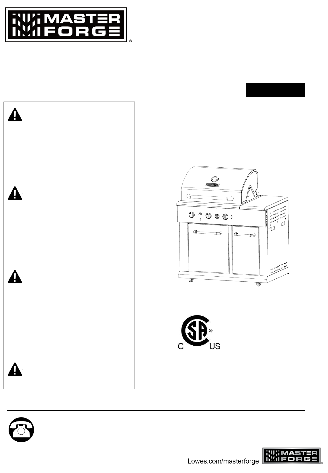 ITEM #0503225 3-BURNER MODULAR GRILL MODEL #BG1793B-A Master Forge & M Design® is a registered trademark of LF, LLC. All rights reserved. Español p. 40 WARNING Improper installation, adjustment, alteration, service or maintenance can cause injury or property damage. Read this instruction manual thoroughly before installing or servicing this equipment. WARNING 1. Do not store or use gasoline or other flammable vapors and liquids in the vicinity of this or any other appliance. 2.