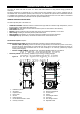 SETTING THE DOUBLE THERMOSTAT The heater is supplied with the double thermostat already adjusted according to the following table: FAN Function LIMIT Function 25 – 35°C 100°C If you need to check or re-adjust the thermostat operation settings, observe the following notes. Legend: Type 1÷4 1. White push-button for Automatic-Manual ventilation (if present). 2. Electric connections for FAN function. 3. Graduated scale. 4. Holes for fastening. 5. Fan unit stop temperature indicator. 6.