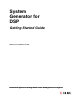 Chapter 4 Getting Started Introduction This Getting Started training consists of six short lessons that introduce you to major features of System Generator for DSP. Each lesson takes less than 10 minutes to read and is followed by one or more hands-on lab exercises. The lab exercise folders are located in the System Generator software tree and contain data files and step-by-step instructions.