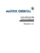 15.11Miscellaneous . . . . . . . . . . . . . . . . . . . . . . . . . . . . . . . . . . . . . . . . . . 15.12Command By Number . . . . . . . . . . . . . . . . . . . . . . . . . . . . . . . . . . . . . 16 Appendix 16.1 Specifications . . . . . . . 16.1.1 Environmental . . 16.1.2 Electrical . . . . . 16.2 Optical Characteristics . . 16.3 Physical Layout . . . . . . 16.4 Ordering Information() . . 16.5 Definitions . . . . . . . . . 16.6 Contacting Matrix Orbital . 16.7 Revision History . . . . .