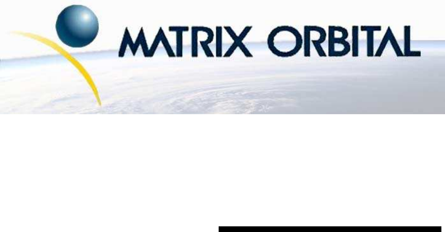 2.1.1 Power Connection Power is applied via pins 1 and 4. Power requirement for standard units is +5 VDC ±0.25V (units with the wide voltage range option require 7 - 15 Vdc). Power may also be supplied via the RS-232 connector. WARNINGS • Do not apply any power with reversed polarization. • Do not apply any voltage other than the specified voltage. • Do not use any cables other than the cables supplied by Matrix Orbital, unless aware of the modifications required.