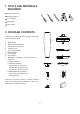 1. TOOLS AND MATERIALS REQUIRED Philips screwdriver Blade screwdriver 11 mm wrench Step ladder Wire cutters 2. PACKAGE CONTENTS Unpack your fan and check the contents. You should have the following items: e a a. Blade set (3) b. Hanger bracket assembly c. Ball / down rod assembly d. Coupling cover e. Fan motor assembly f. Mounting plate g. LED Light kit h. Glass shade i. Wall switch + wall plate + 4 mounting screws + 4 wire nuts j.