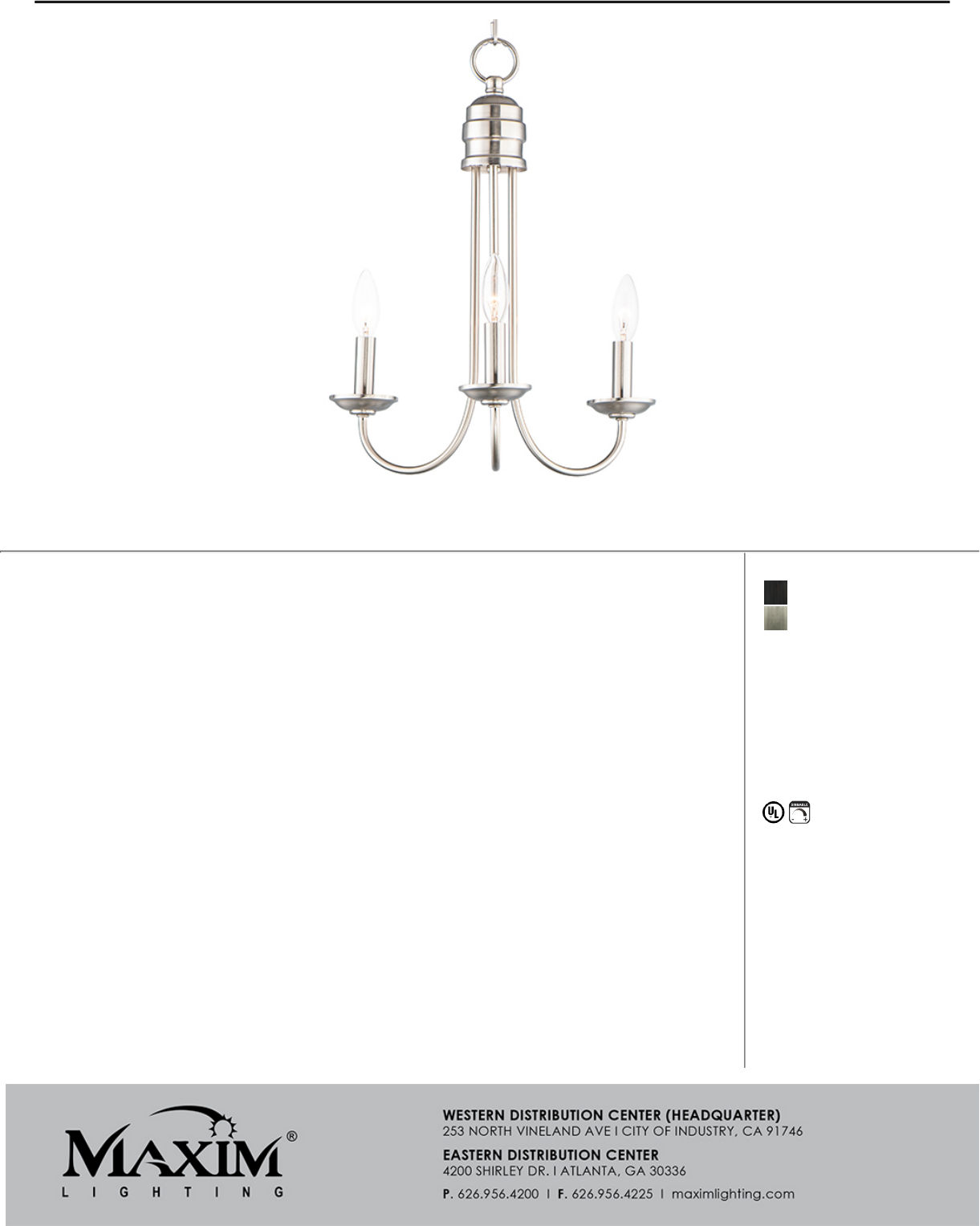 BULB : 3 x 60W Incandescent E12 Candelabra , 180W Total