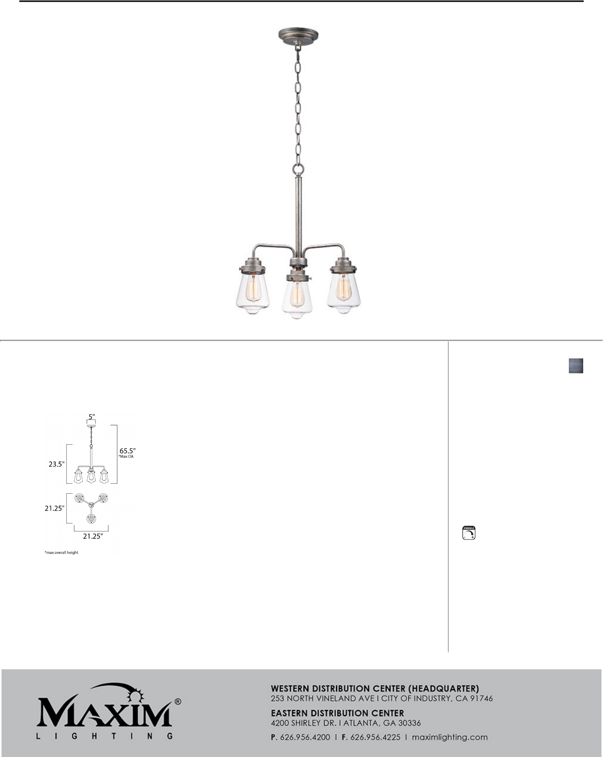 BULB : 3 x 60W (NOT INCLUDED), 60W Total