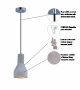 Bl ac kc l ot hc ov er ed wi r e , r ei n f or c edwi t h i n t er n al s t eel c abl e GU10L E DDi mmabl e bu l bsi n c l u ded E x cl u s i v et ex t u r ed v ar i ou ss h apes c on c r et emol ds P en dan t smol ded i nNat u r al Gr ay con cr et ecemen t
