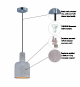 Bl ac kc l ot hc ov er ed wi r e , r ei n f or c edwi t h i n t er n al s t eel c abl e GU10L E DDi mmabl e bu l bsi n c l u ded E x cl u s i v et ex t u r ed v ar i ou ss h apes c on c r et emol ds P en dan t smol ded i nNat u r al Gr ay con cr et ecemen t