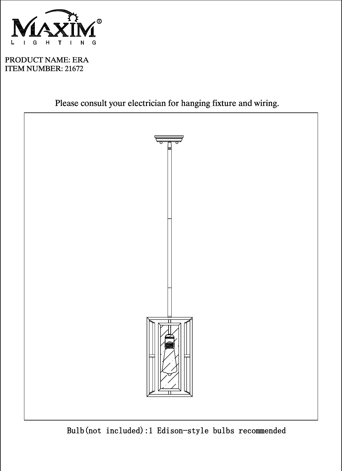 IMPORTANT: Turn off power at the main fuse or circuit breaker box before starting installation = Ul Canopy (B) Stems % /. (C)Body (D)Ball nut (E)Bracket Locate all hardware & components before discarding packaging B—— B— Bifl . ~— L) chj Step. 1: Remove mounting bracket(E) from fixture and install to electrical box. A—=~ Blip + Step. 2: Run wire through combine stem lengths to meet desired mounting height. 3.) Step. 3: Wire fixture to wires in outlet box. Copper/Green wire is for Ground. Step.