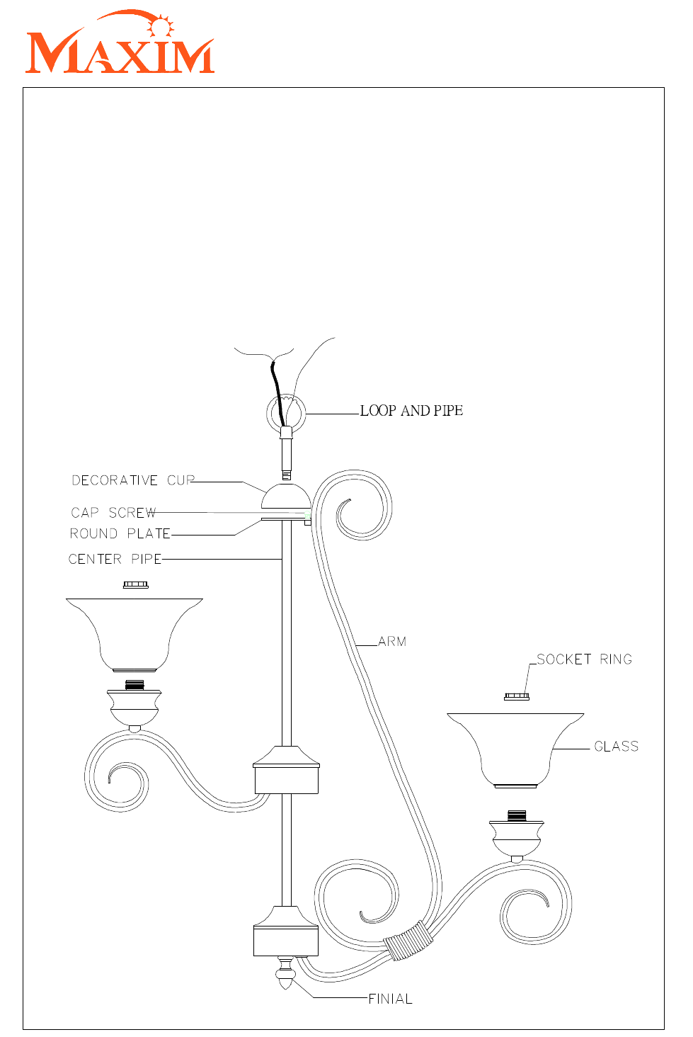 3. Slide the loop and pipe set and the decorative cup down the wire until it touches