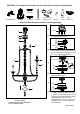 IMPORTANT: Turn off the power at the main fuse or circuit breaker box before starting installation. Canopy (C) Mounting Strap (A) Body (B) Glass dish (D) Cap & Glass disc & glass finial (F) Chain (E) Glass (G) Socket cover (H) Glass Bobeche (I) Locate all hardware & components before discarding packaging 1). A (A) Step.1: Remove mounting Strap (A) from fixture and install to electrical box. C D (C) (D) (E) E 2). Fixture loop G (B) Step.2: Install fixture loop.