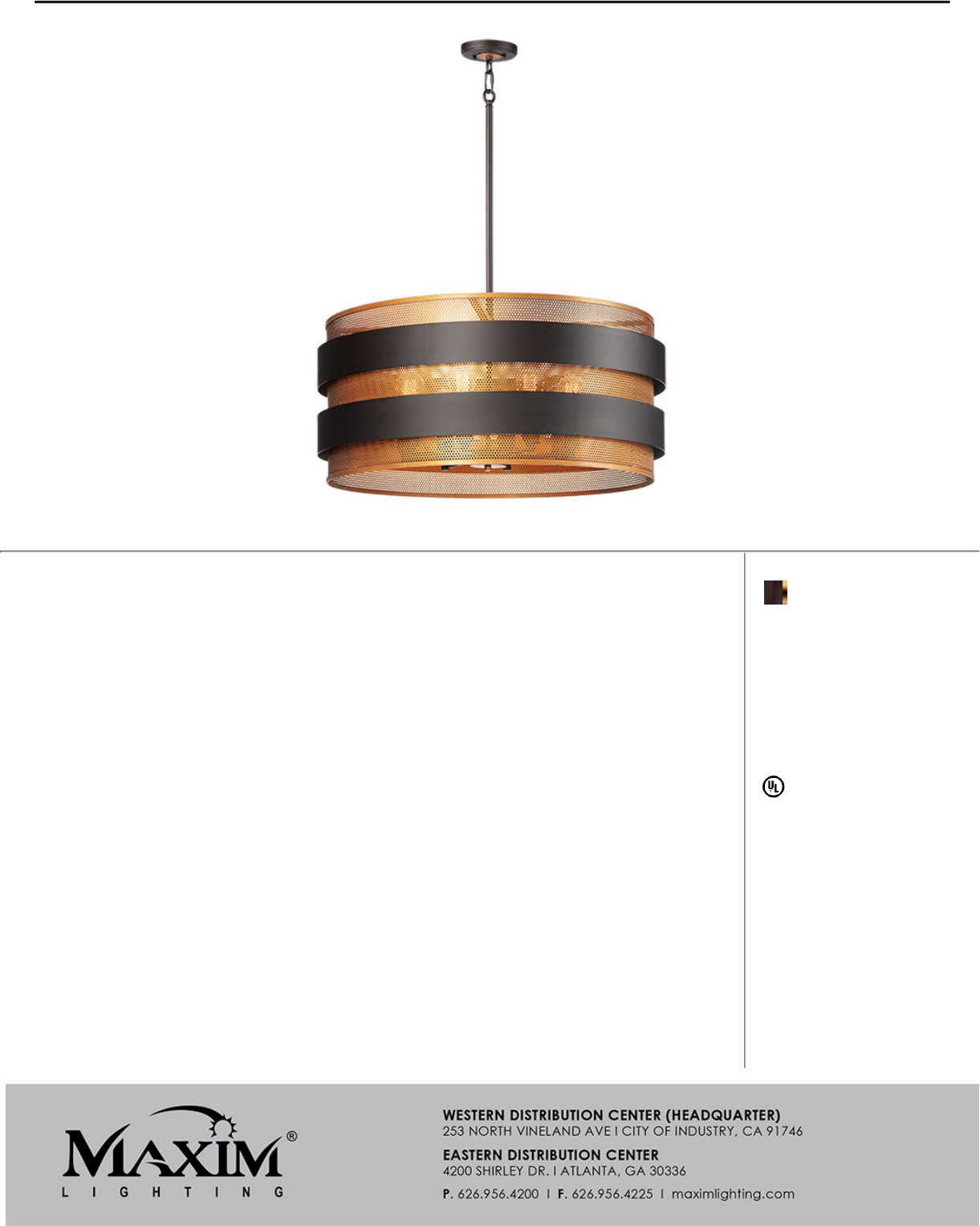Inner shades of perforated metal are finished in a soft Antique Brass and accented by bands in a complimentary Oil
