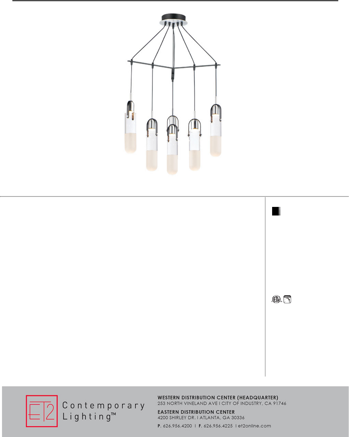 Glass vessels of Frost and Clear are illuminated by LED concealed in Brushed Aluminum domes which suspend from