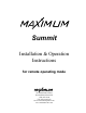 Summit Installation & Operation Instructions for remote operating mode 30 Samuel Barnet Blvd. New Bedford, MA 02745 (508) 995-2200 Fax (508) 998-5359 service.maximum@imtra.com www.maximum-inc.