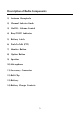 Description of Radio Components 1) Antenna Receptacle 2) Channel Selector Knob 3) On/Off - Volume Control 4) Busy/TX/BT Indicator 5) Battery Latch 6) Push-To-Talk (PTT) 7) Monitor Button 8) Option Button 9) Speaker 10) Microphone 11) Accessory Connector 12) Belt Clip 13) Battery 14) Battery Charge Contacts 5
