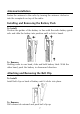 Antenna Installation Fasten the antenna to the radio by turning the antenna clockwise into the receptacle on top of the radio. Installing and Removing the Battery Pack To Install: Position the guides of the battery in line with the radio battery guide rails and slide the battery into position until a click is heard. To Remove: Holding radio in one hand, slide and hold battery latch. With the other hand, push the battery in downward direction.
