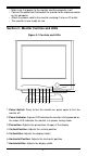 • Make sure that power to the monitor and the computer is off. • Connect the cable from the back of the monitor to the video connector on the computer. • Attach the power cord to the monitor and plug it into an AC outlet. • The monitor is now ready for use. Section 3 - Monitor Controls and LEDs Figure 3-1 Controls and LEDs 1 2 3 4 5 6 7 8 9 1. Power Switch: Press to turn the monitor on, press again to turn the monitor off. 2. Power Indicator: A green LED indicates the monitor is fully powered on.