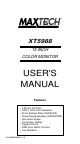 XT5988 15 INCH COLOR MONITOR USER'S MANUAL Features • • • • • • • • • 0.28 mm Dot Pitch 1280 x 1024, Non-Interlaced 90 Hz Refresh Rate (VGA/SVGA) Power Saving Operation (VESA DPMS) Non-Glare Screen Full Screen Display Digital Controls RGB Color Match Controls Low Radiation Part #MAN060 Rev. 1.
