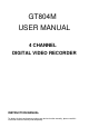 GT804M USER MANUAL 4 CHANNEL DIGITAL VIDEO RECORDER INSTRUCTION MANUAL To obtain the best performance and ensure device function correctly, please read this instruction manual carefully and completely.