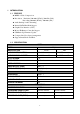 TABLE OF CONTENTS 1 2 INTRODUCTION .......................................................................................................................4 1.1 FEATURE.......................................................................................................................4 1.2 SPECIFICATION...........................................................................................................4 HARDWARE OVERVIEW ..............................................................................