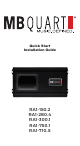 Before you start CAUTION Many new and factory radios require a reset code when disconnected from battery power. This is an anti-theft feature. Before unplugging power, you must determine if your radio/source unit requires a reset code. Check the operation manual for your vehicle or contact the dealer. Congratulations on your choice of a MBQuart amplifier. This “Quick Start Installation” guide is meant to help you “hook up” and play music.
