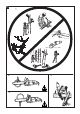 B. ĮSPĖJIMAI SIMBOLIŲ REIKŠMĖS Įspėjimas! Įdėmiai perskaitykite naudojimo instrukciją Pjovimo dantelių teisinga kryptis Apsauginiai batai Visada laikykite prietaisą abejomis rankomis Atatrankos pavojus Apsauginiai akiniai arba antveidis, apsauginis šalmas ir klausos apsauga 10 m Nedirbkite lyjant ar kai yra drėgna Apsauginės pirštinės, atsparios įpjovimams Grandinės alyva Apsauginės ilgos kelnės, atsparios įpjovimams Susilaikykite nuo...