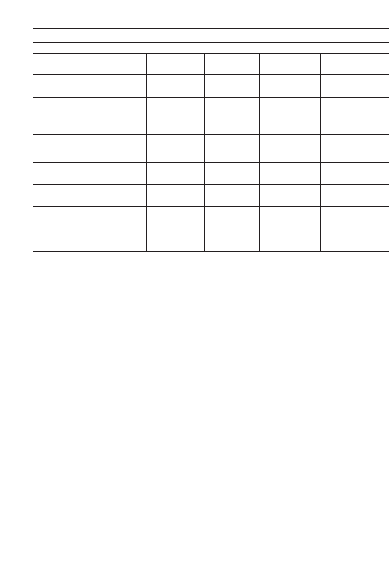Fault finding table