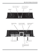 Side Panel Cooling and Connections Connect to the Negative (-) vehicle battery terminal Connect to the positve (+) vehicle battery terminal with an inline fuse Cooling Fan Air Intake INPUTs for audio cables from a signal source Cooling Fan Air Intake Receives the Amplifier Turn-ON signal from a McIntosh Control Center OUTPUT Connections for 2, 4 or 8 ohm loudspeakers Connector for optional Subwoofer Remote Volume Control OUTPUT Connections for 2, 4 or 8 ohm loudspeakers Controls the Power Guard Ci