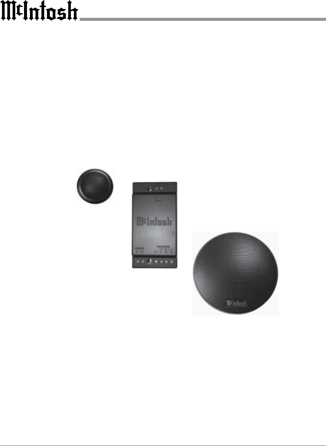 Installation It is recommended that a qualified professional install all McIntosh Sound System Products. McIntosh Woofer/ Midrange Drivers, Tweeters and Crossover Networks should be used in conjunction with McIntosh Subwoofers and McIntosh Electronics to achieve the best possible performance. McIntosh Subwoofers are designed to operate in the bass frequency range below 120Hz and need not be physically close to Midrange and Tweeter Loudspeakers in order to maintain good imaging and system frequency balance.
