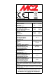 MCZ GROUP SPA Via La Croce n° 8 33074 Vigonovo di Fontanafredda (Pordenone) - ITALY Telefoon: 0434/599599 r.a. Fax: 0434/599598 Internet: www.mcz.it e-mail: mcz@mcz.