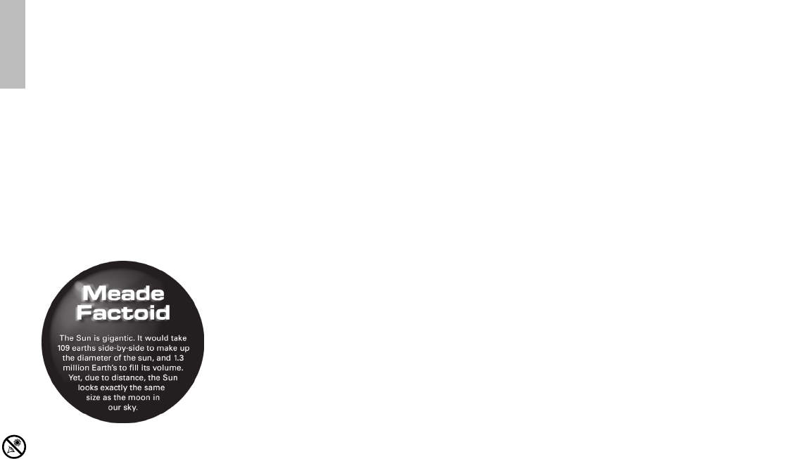 Looking at or near the Sun will cause irreversible damage to your eye. Do not point this telescope at or near the Sun. Do not look through the telescope as it is moving.