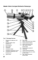 SPECIFICATIONS Objective (main) lens focal length . . . . . . . . . . . . . . .350mm Objective lens diameter . . . . . . . . . . . . . . . . . . . . . . .70mm Mounting type . . . . . . . . . . . . . . . . . . . . . . . . . . . . . . .Table-top Altazimuth Eyepieces (1.25” Diameter) . . . . . . . . . . . . . . . . . . . .MA17.5mm MA9mm Barlow lens . . . . . . . . . . . . . . . . . . . . . . . . . . . . . . . . .2X Erecting Prism . . . . . . . . . . . . . . . . . . . . . . . . . . . . . .