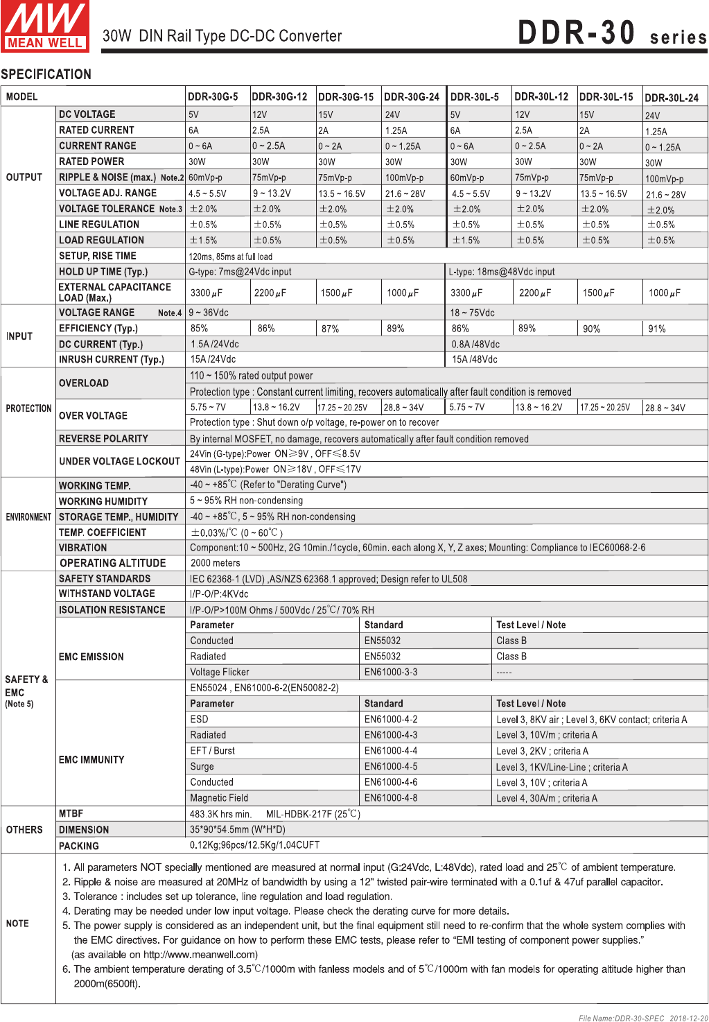 Mean Well DDR-30L-5 Rail mounted DC/DC converter (DIN) 5 V DC 6 A 30 W 1 x