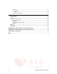 Index Electrode Pads Button location 7 Button operation 10 Indicators description 6 F Features inside the AED Trainer 5–6 G General Operating Settings Automatic/Semiautomatic Shock 17, 20 CPR Time 17 Pulse Check 17, 20 Pulse Prompts 16, 20 Shock Protocol 16 Stack Shocks 17, 20 Start Prompt 16, 20 Green Select Button Location 7 Operation 12 H Handle location 3 Handle, carrying 3 I Inside Features 5, 6 Installing and Replacing Batteries 8, 24 Installing and Replacing Remote Control Batteries 8 L Language Opt